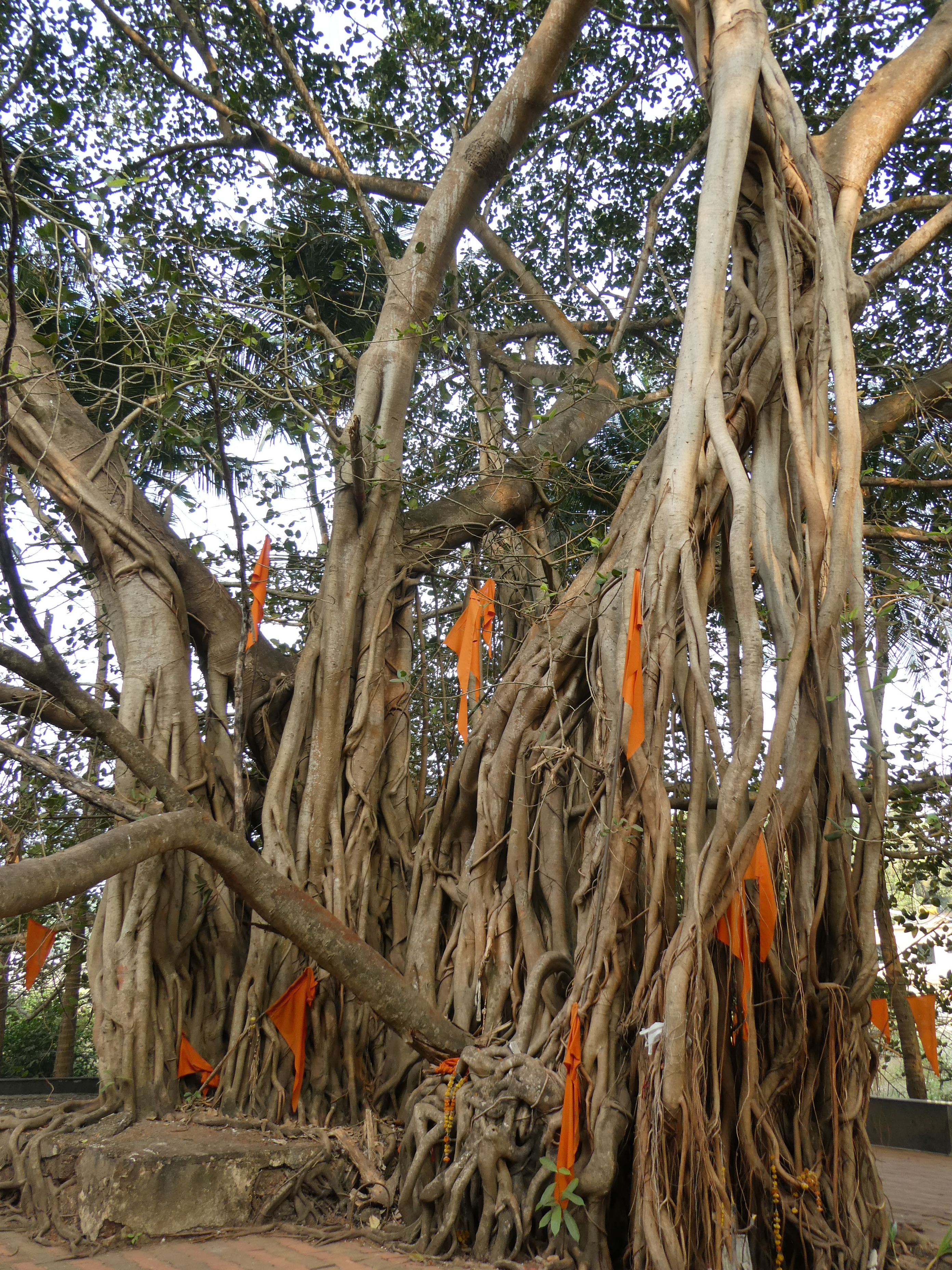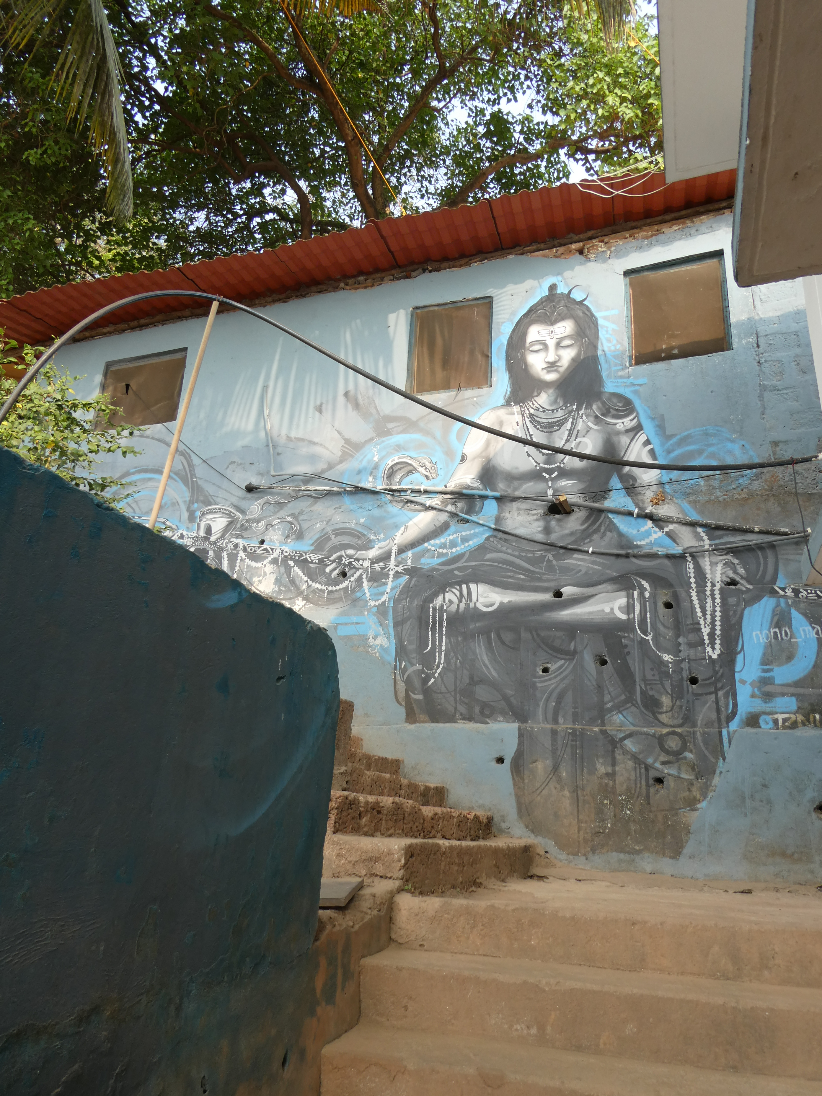 Exotische Vögel leisten mir Gesellschaft. Ich drehe mich immer wieder um, aber mich nervt meine Paranoia. Ich kreuze mehrmals das Flußbett und passiere Zelte von Indern oder Yogis, die hier kampieren. Als ich indische Touristen höre, lege ich einen Zahn zu. Das GPS Signal ist mäßig genau und es ist herausfordernd dem Trampelpfad zu folgen. Da ich mit meinem verletzten Fuß keine Sneaker tragen kann, bin ich in Birkenstocks unterwegs. Nicht das richtige Schuhwerk für diesen rutschigen und steilen Trail. Mein Dutt hängt in unzähligen Ästen und ich mache Umwege um Spinnennester auf dem Boden. Dass ich von Natur aus keine graziele Person bin, kommt mir heute zu Gute. Schweren Schrittes stapfen ich durch Gräser, um Schlangen die Chance zu geben sich zu verdünnisieren. In meinem Kopf erklingt im Takt der Schritte GO-A-WAY. Das scheint gut zu klappen, denn weder liebestolle Inder, noch Kobras kreuzen meinen weiteren Weg. Ich bin froh, als ich über den roten Sand wieder den Berg runtergeschliddert und wieder in der Zivilisation angekommen bin.