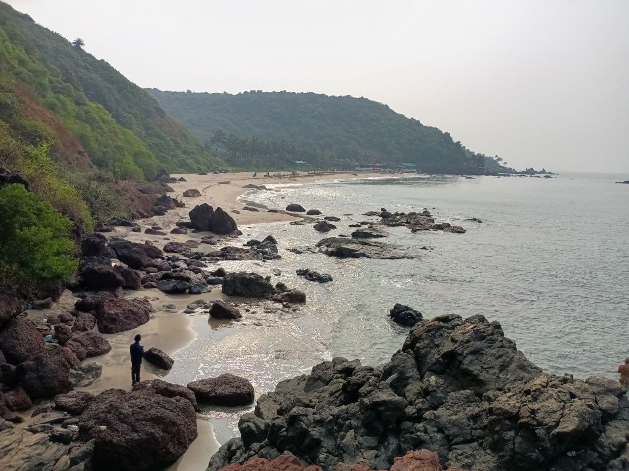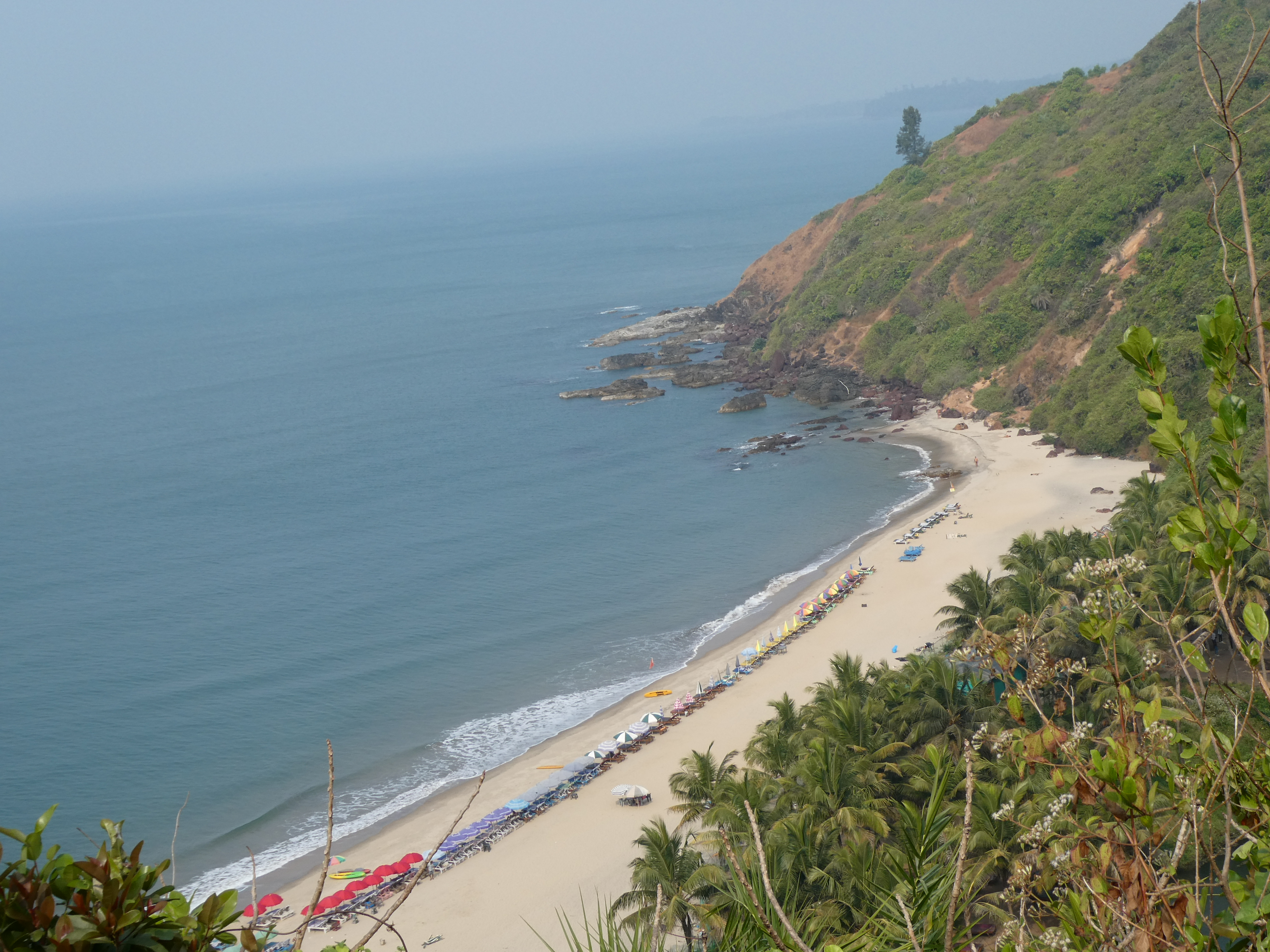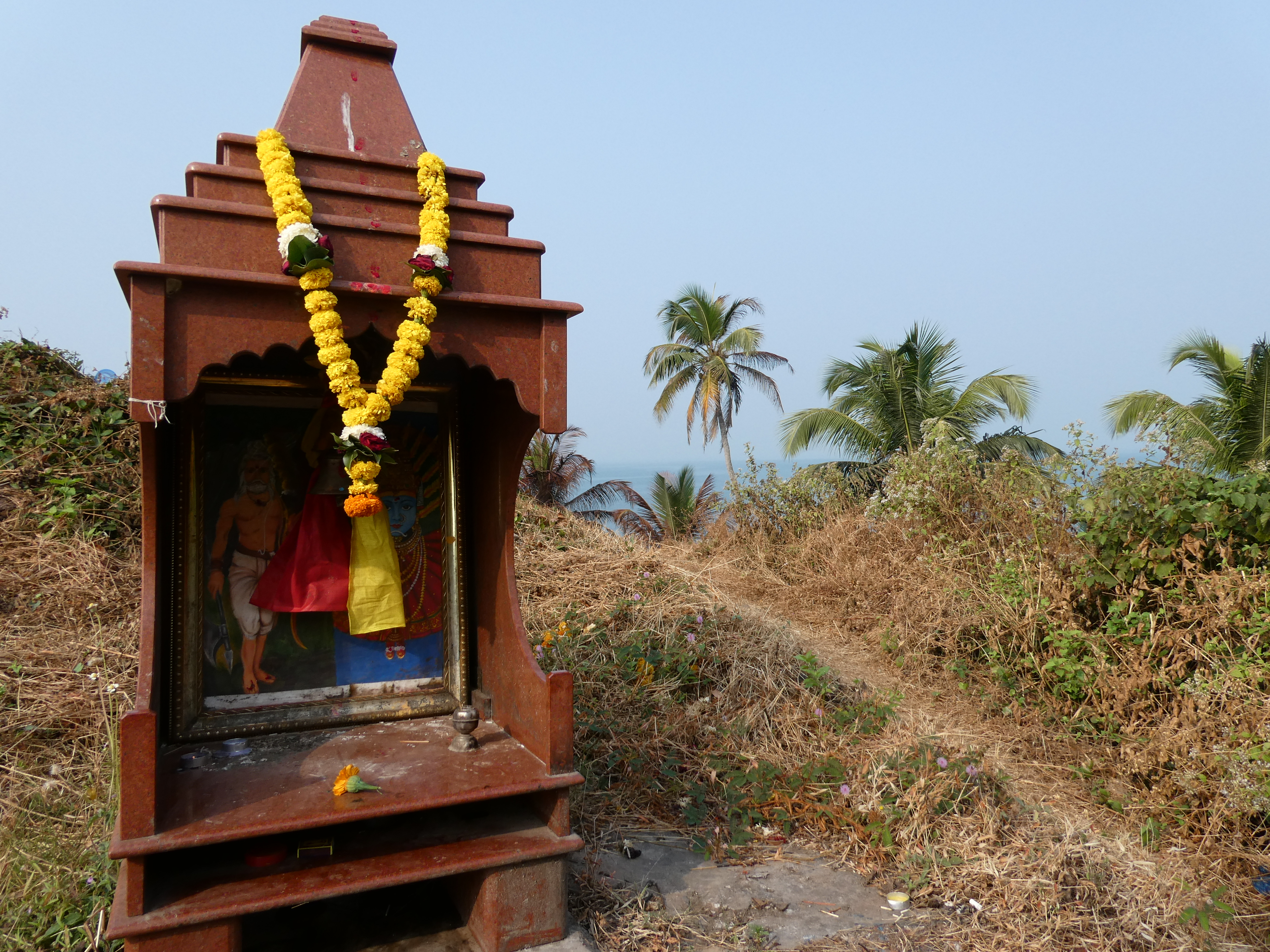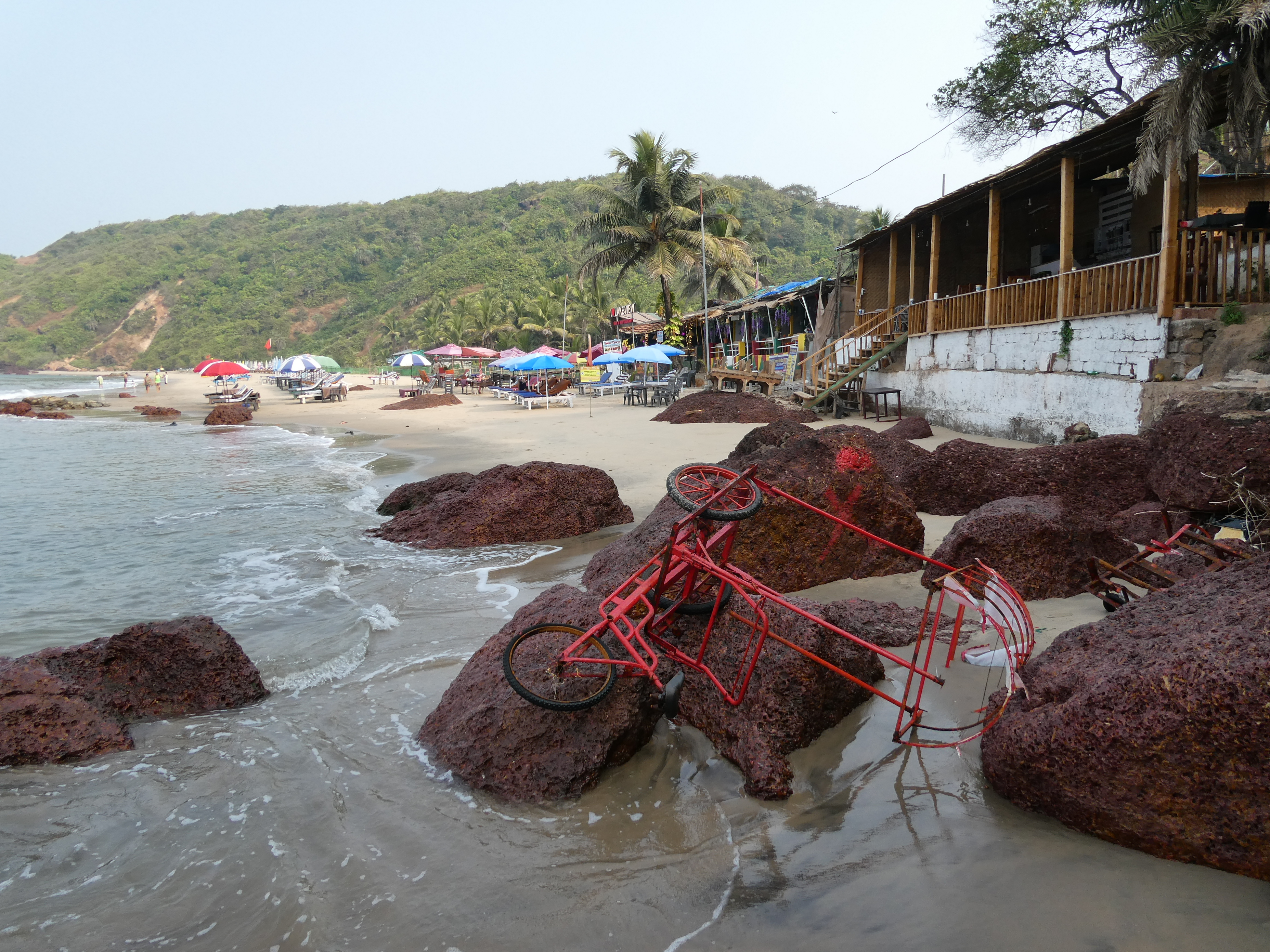 Auch wenn man eigentlich Nichts braucht, ist man schnell überzeugt, dass man noch Räucherwerk, Edelsteine, Ledertaschen und Goa-Klamotten kaufen sollte. Der Aufdringlichkeitsfaktor der Händler ist für indische Verhältnisse entspannt und nur selten wird gebettelt. Ich folge der Küstenlinie und passiere unzähligen an den Klippen hängenden Restaurants, von denen man mit Sicherheit ganz wunderbar den Sonnenuntergang beobachten kann. Über Klippen klettere ich zur nächsten Bucht, an der nur eine Handvoll indischer Touristen den Süßwassersee besucht haben.