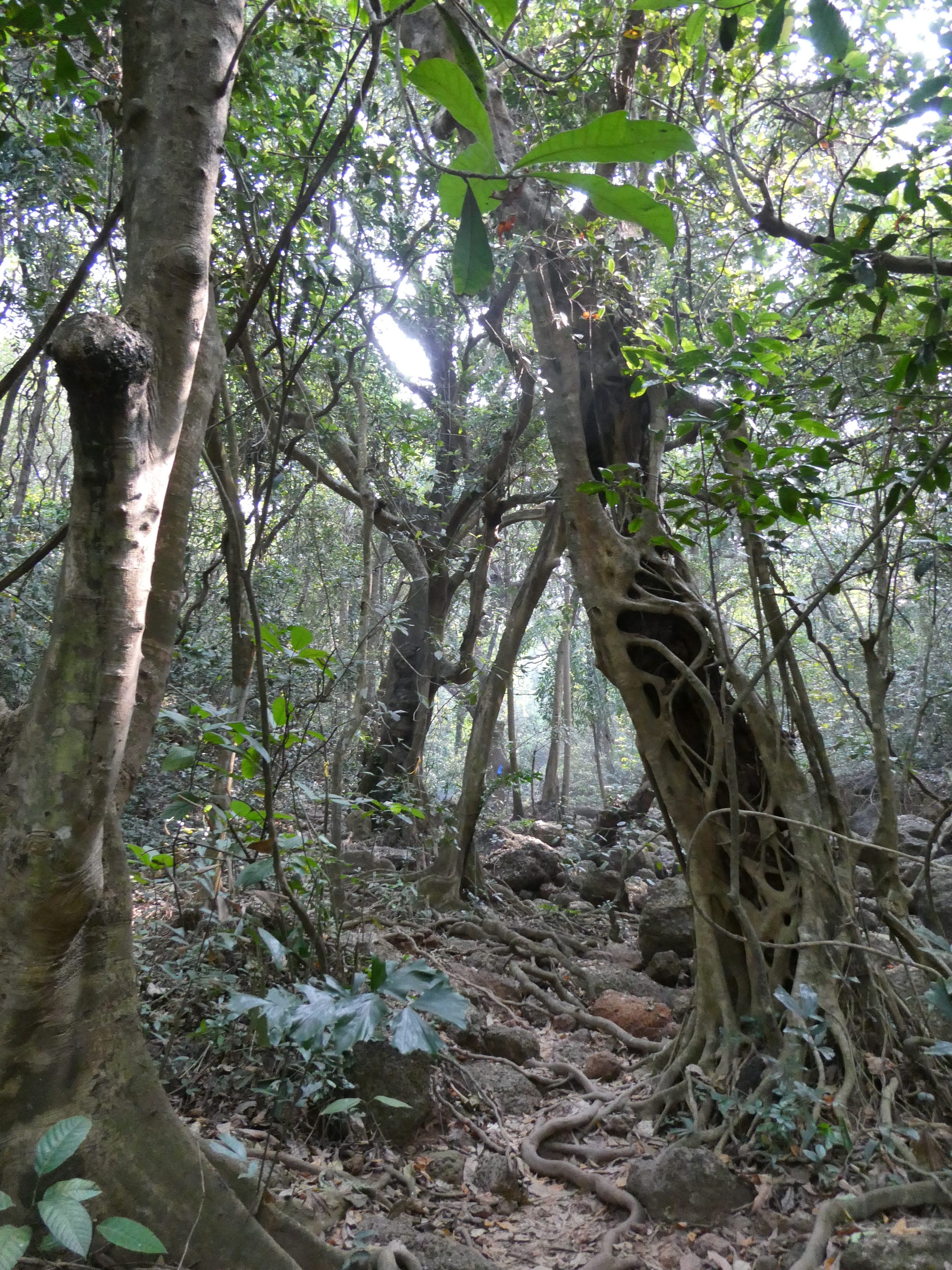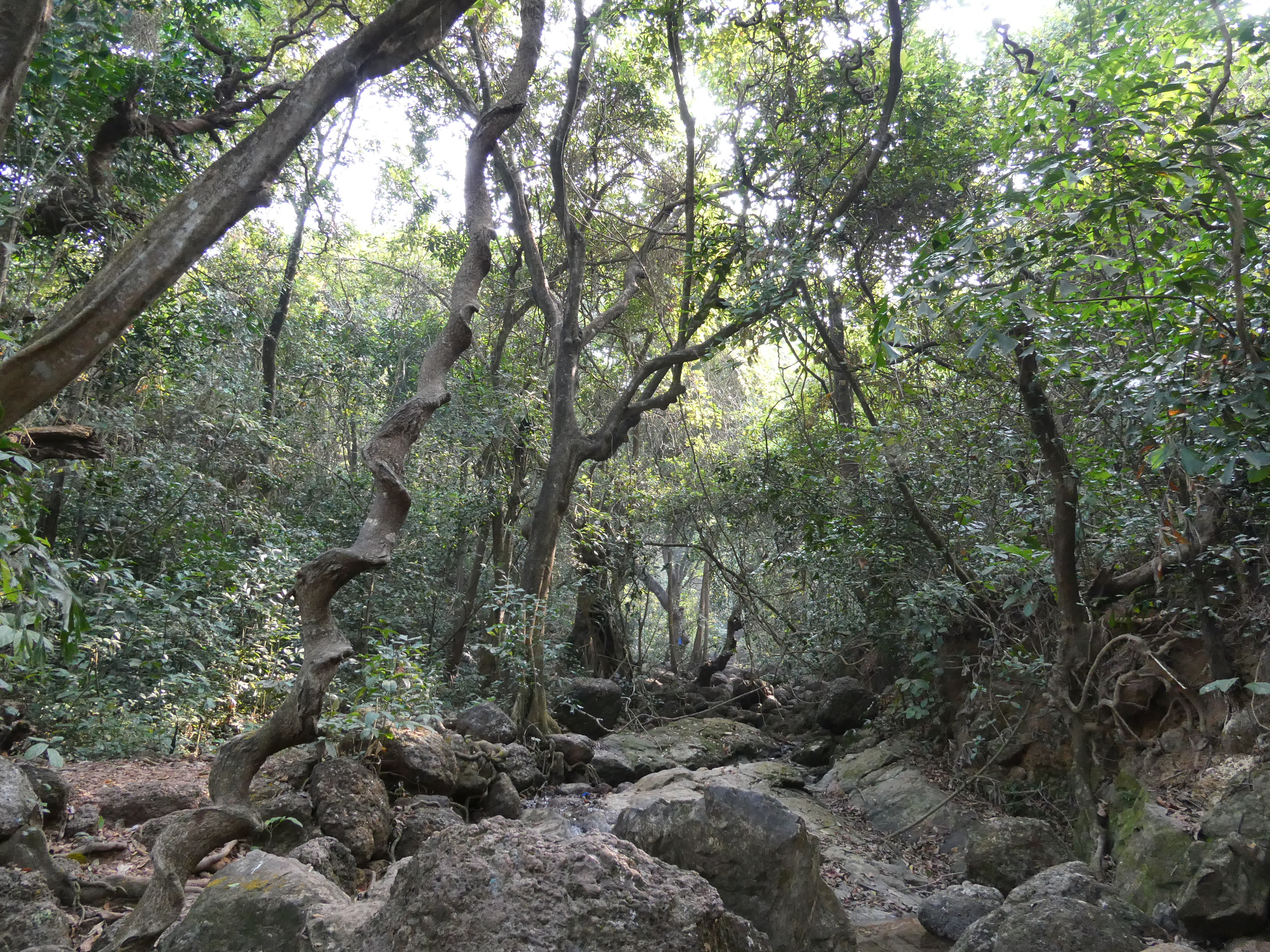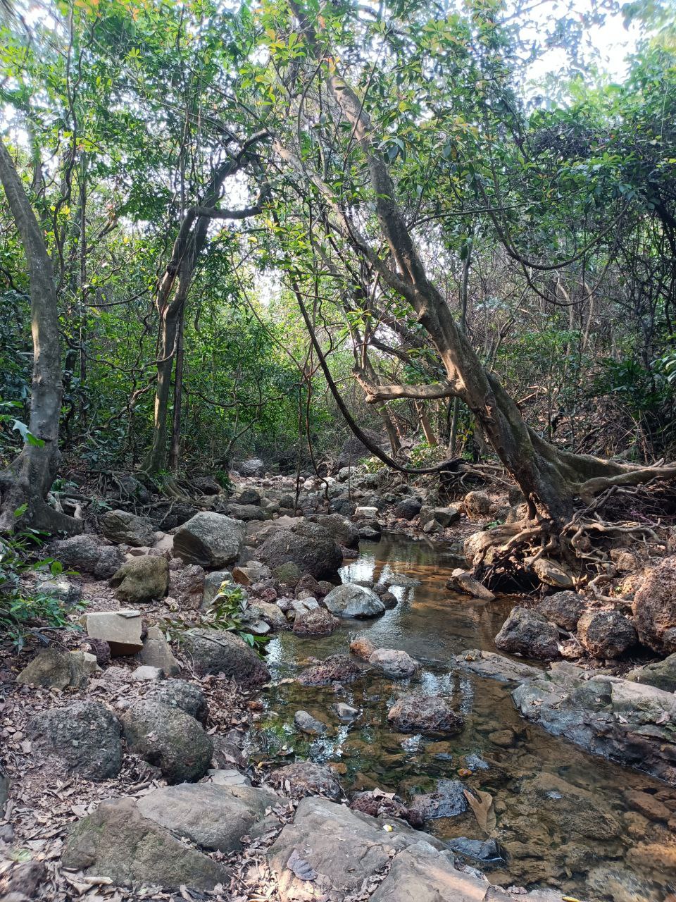 Ich passiere russische Nudisten-Hippis am Ende des Strandes und klettere einen Felsen hoch, als ich merke, dass ich verfolgt werden. Ich will ihn passieren lassen, um auszuschließen, dass er mir folgt und er zischt mir WANNA HAVE SEX zu. Na großartig. Mit ihm im Schlepptau will ich nun wirklich nicht dem einsamen Single Trail weiter wandern, der vor mir liegt. Ich drehe um. Da er gerade die indische Palme schüttelt, kann er mir nicht folgen. Den Vorsprung nutze ich, um mich hurtig aus dem Staub zu machen. Hinter dem Sweetwater lake führt ein Trampelpfad im Halbkreis durch den Jungle. Ich bin nach der Erfahrung mit dem Typen mit runtergelassenen Hosen unschlüssig, ob ich da nun entlangwandern soll, oder lieber nicht. Ich Frage einen Strandliegen-Inder, ob der Weg sicher sei. Er ermutigt mich weiterzuwandern. Der Weg ist friedlich und führt entlang eines den See speisenden Flußes.