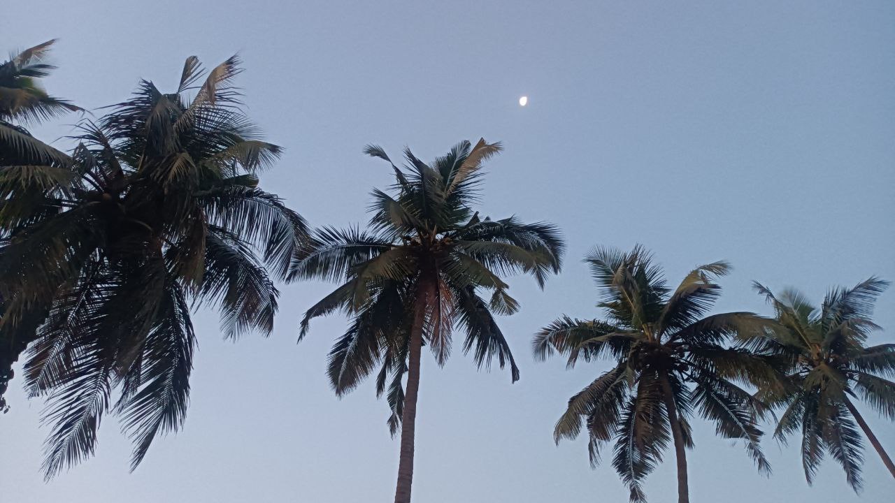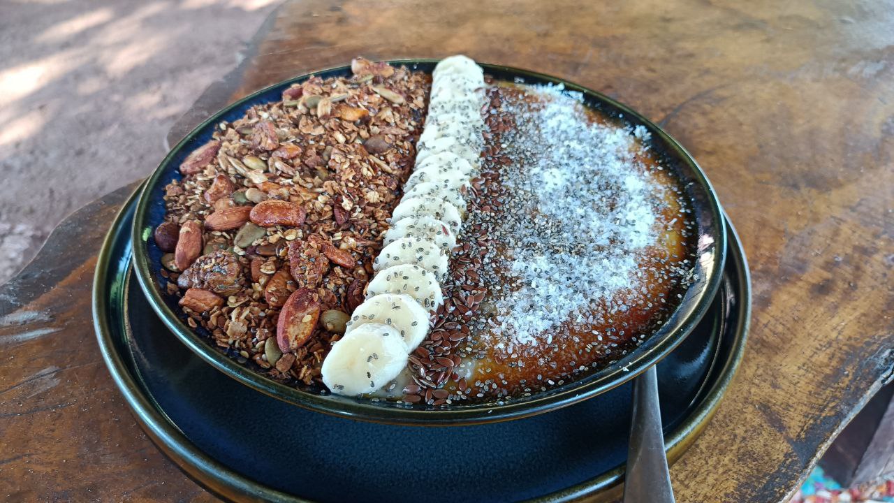 Ich bin seit einer guten Woche hier, aber die Zeit scheint hier langsamer zu vergehen. Manches Mal im Leben kommt es einem vor, als würde die Zeit rasen und sie rinnt einem unaufhörlich durch die Finger. Hier jedoch bekommt man was für seine Zeit. Dies liegt sicherlich daran, dass ich weniger abgelenkt bin. Ich schaue kein Fernsehen, höre keine Podcasts. Ich lese nicht mal (außer im Yoga-Skript für die Weiterbildung). Ich bin da. Da mit dem Streifenhörnchen auf der Stromleitung. Da mit den Kühen, die entspannt auf der Straße chillen. Ich registriere die Krähen, die sich mit einem Seeadler in den Lüften über mir streiten. Als ich andächtig Porridge mit hausgemachtem Granola mampfe, passiert eine Schweinefamilie die Suhle hinter dem Avani Café. Außer einem Althippi bin ich allein in diesem veganen Cafe. Eine Dajaldrossel wittert ihre Chance und hüpft über die Kissen auf der Suche nach Krümeln. Ein anderes Steifenhörnchen klettert über das Mäuerchen und in der Ferne sagt der Hahn Guten Morgen. Graukopfbülbüls, einheimische Singvögel, unterhalten sich angeregt an diesem friedlichen Sonntag morgen. Wind streicht durch die Fauna und alles wird unterstrichen vom Klangteppich der Zikaden.