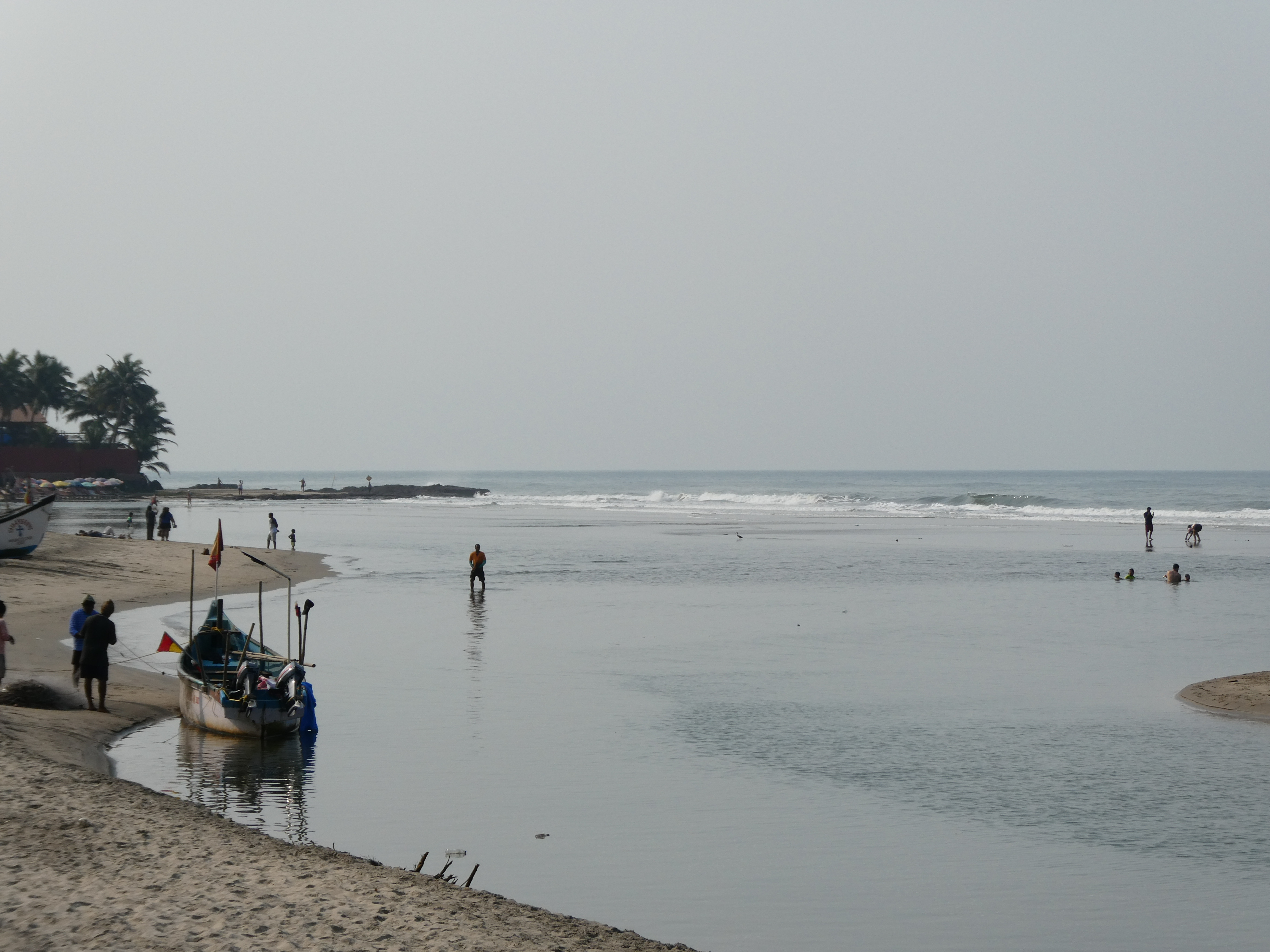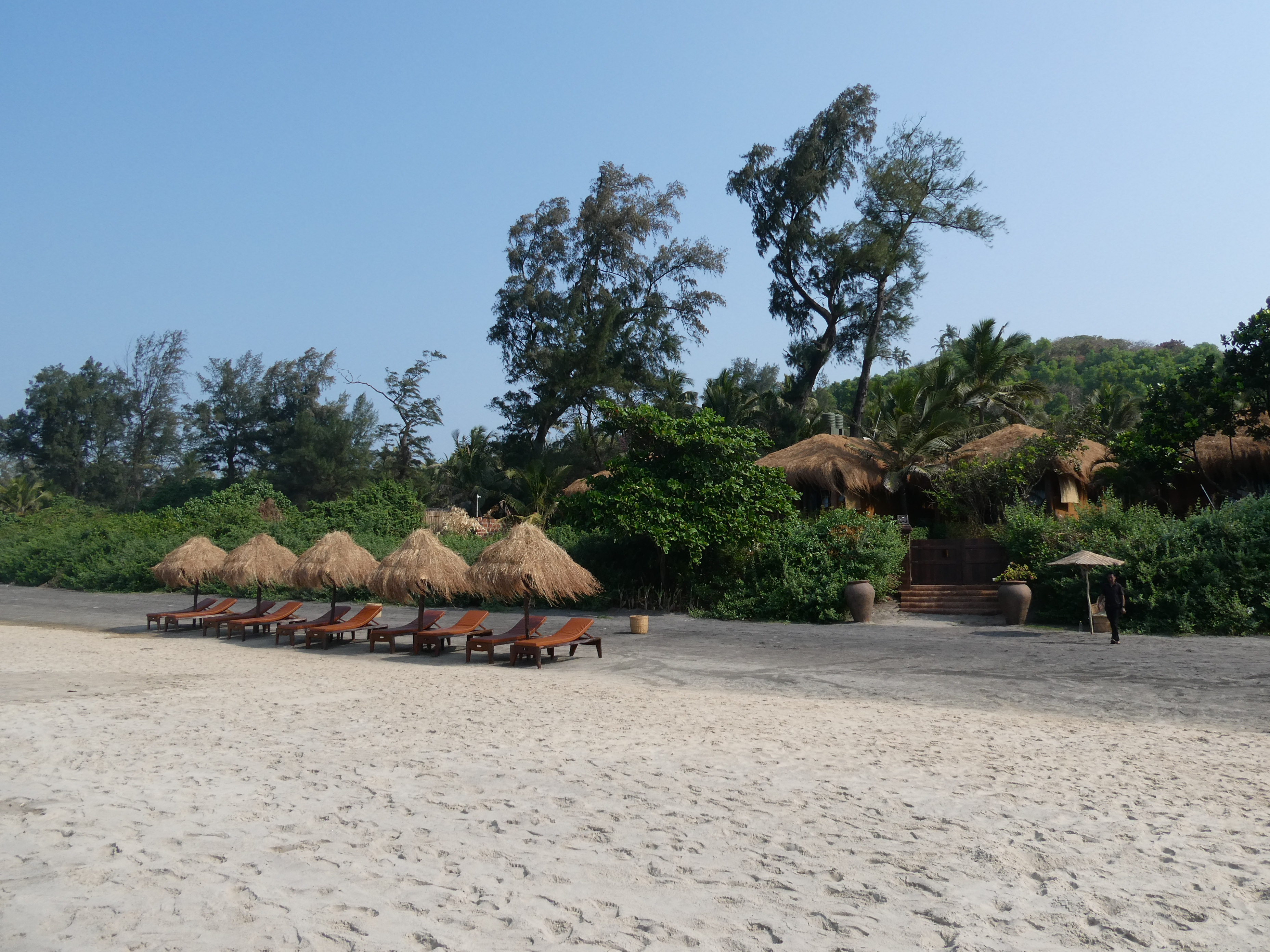 Lass dich an dieser Stelle auf eine kleine Traumreise mitnehmen an den Strand von Ashvem am Sonntagmittag. Du liegst auf einer von der Witterung gezeichneten Liege und hoffst, dass sie deinem Gewicht standhält. Über dir flattert ein ähnlich alter Schirm im Wind. Du löffelst eine Kokosnuss aus, die du gerade leer getrunken hast und spürst den Sand zwischen den Zehen. An einem Ohr hörst du Bob Marley und auf dem anderen den Wellen zu. Wenn du merkst, dass du deinen Körper genug geröstet hast, machst du dich auf den Weg zum Wasser. Dunkle Sandpartien zeichnen geometrische Muster im Sand. Tausende Sandblasenkrebse haben hier ihr Habitat. Zum Glück sind sie flink und düsen in ihr Röhrensystem, wenn du durch ihre Vorgärten stampfst. Sie haben eh ein gefährliches Leben. Sanderlinge und anderes Federvieh lauern geduldig und schnappen sie sich, wenn sie nichtsahnend ihre Höhle verlassen. Das Meer wartet mit starken Strömungen und bikinihöschenklauenden Wellen auf. Danach kommt das nächste Schläfchen auf deiner Liege. 5-4-3-2-1, du kommst zurück, wo auch immer du bist. Ich darf ja zum Glück noch eine Woche bleiben.