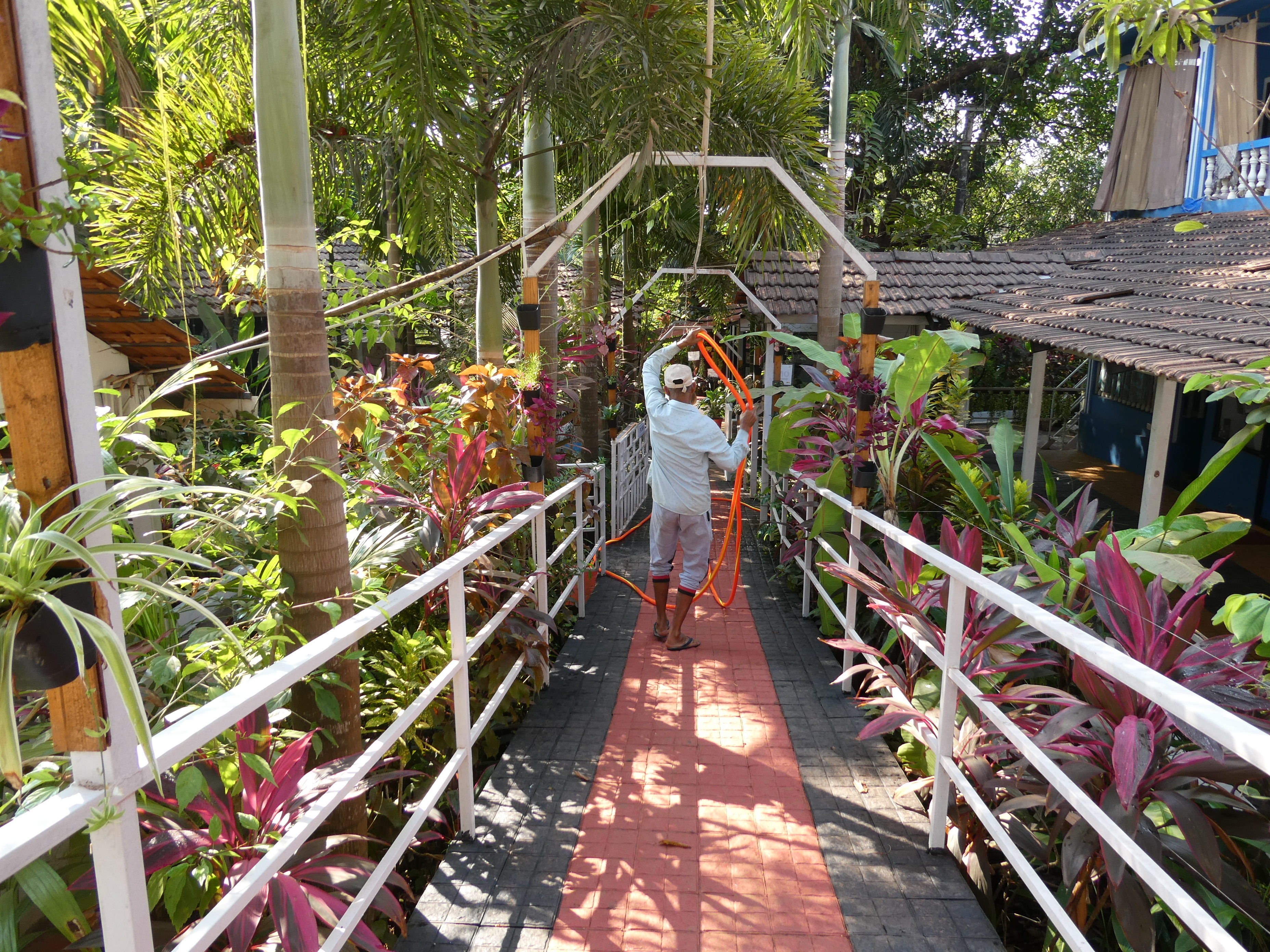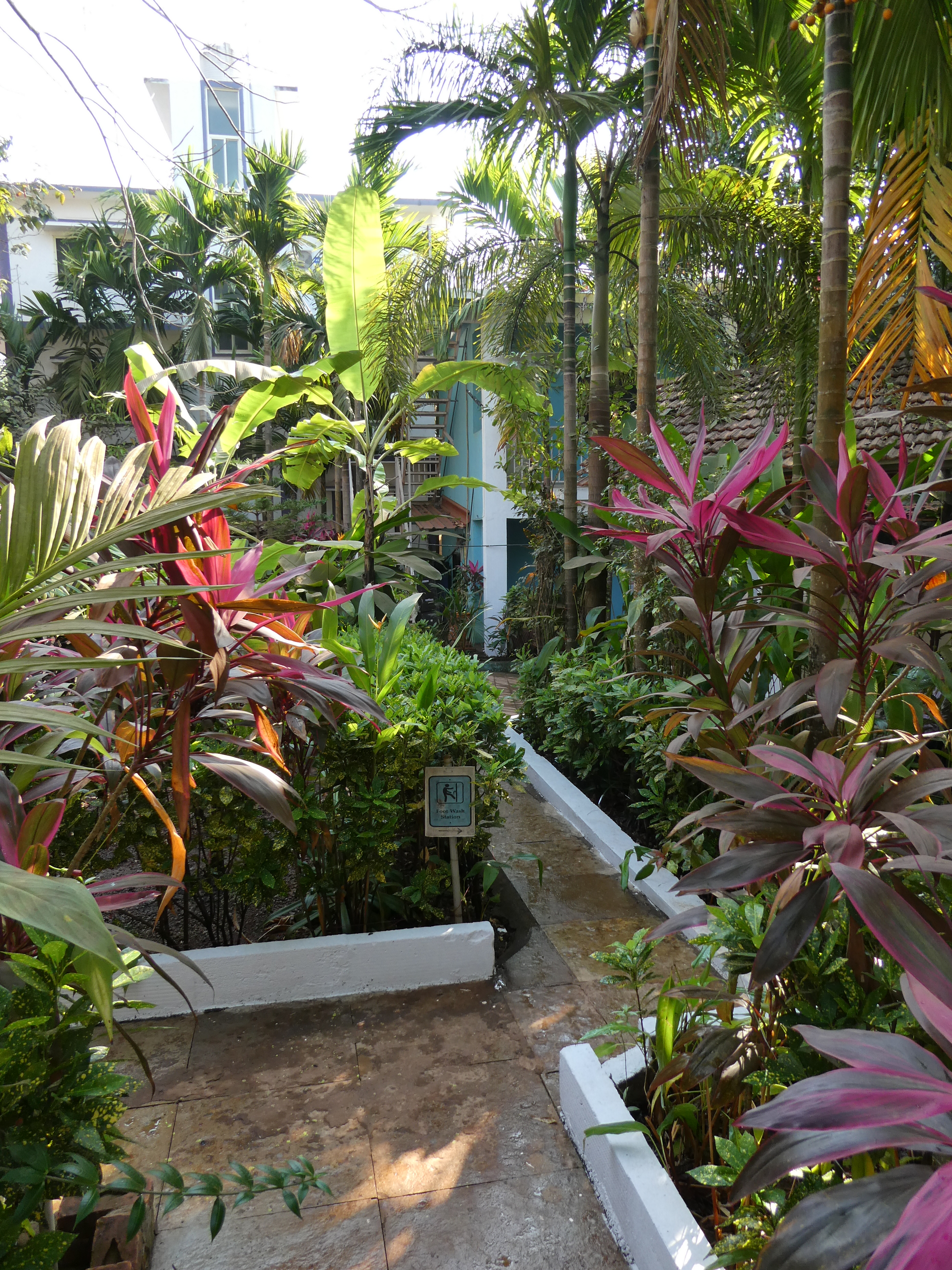 Es ist eine angenehme Abwechslung bei den gemeinsamen Mahlzeiten in anregende Unterhaltungen mit Menschen aus aller Herren Länder zu schnacken. Es sind ganz unterschiedliche Menschen, die hier sind für Yoga, Massagen oder das Detox-Programm Pancha Karma. Eine Engländerin bringt ihren Raucherhusten mit in die Yogastunde und ich meinen Schnupfen. Es ist mir schleierhaft wie man sich bei 30 Grad erklären kann, aber vielleicht war es die Klimaanlage, die auf 14 Grad weniger als die Außentemperatur eingestellt war. Es ist müßig zu spekulieren. Es fällt mir die ersten zwei Tage schwer meinen Aufenthalt zu genießen, da ich bei den Massagen röchelnd versucht habe Luft zu bekommen und ich zu energielos war, um das ganze Programm mitzumachen. Auf der anderen Seite gibt nunmal der Körper den Ton an. Wenn der Dirigent sagt, mach mal halblang, dann mache ich dies eben. An Tag 3 tropfe ich weniger und die Lebensgeister kehren langsam zurück. Leider nicht gesund genug, um heute mit einer Gruppe Spanierinnen zum Extatic Dance zu gehen, aber so weit wieder ok, dass ich einen Spaziergang zum Strand nach dem Mittagessen in Erwägung ziehen könnte.